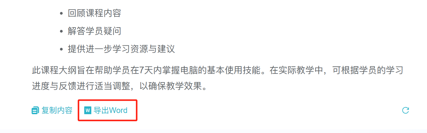 首先我们点击这个课程大纲,然后我们就输入一个 我想要做的一个教育产品,让他去帮助我们去快速梳理这个课程大纲