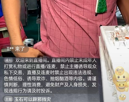 直播中使用字幕贴图宣传佩戴饰品可辟邪挡灾。 | 直播主题表示商品可以辟邪挡灾。 |