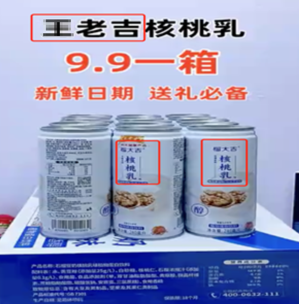 ![]() | 直播间宣称商品为大众熟知品牌“某老吉“,实际销售的商品品牌为“榴大吉”。 |